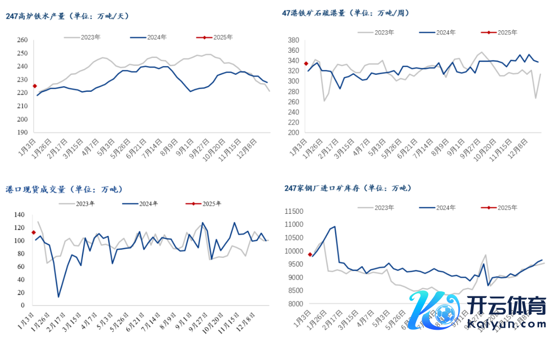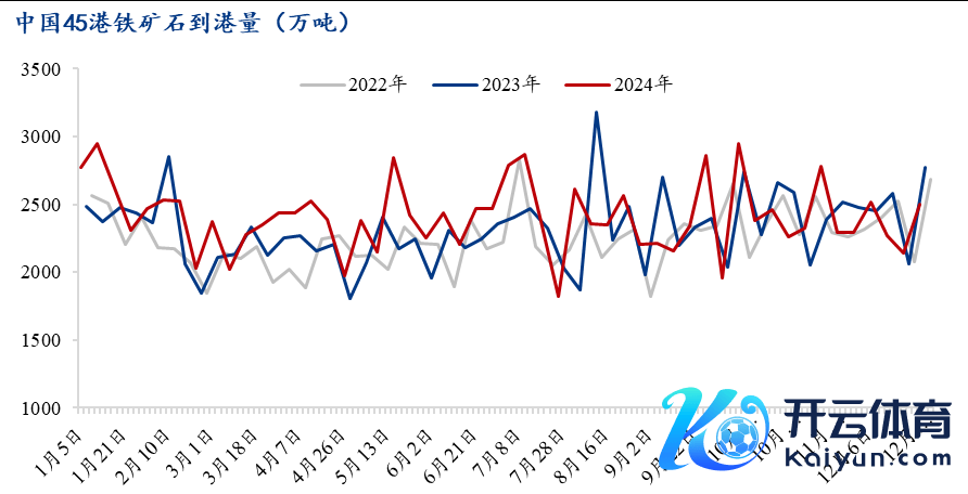 近期中国45港铁矿石近端供应环比回升,处于近三年中等水平。字据Mysteel45港铁矿石到港量数据傲气,本期值为2505万吨,周环比加多366.9万吨,较上月周均值低113万吨;12月到港量周均值为2357万吨,环比11月减少35万吨,同比旧年12月减少112万吨。本年以来,45港铁矿石到港量累计同比加多4821.5万吨,其中澳洲累计同比减少236万吨,巴西累计同比加多2948万吨,非主流累计同比加多1999万吨。字据模子测算及近期天气预测,忖度下期到港量环比连接回升。