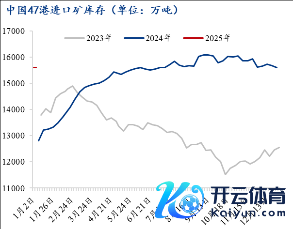中国47港铁矿石库存呈现小幅累库趋势,糟塌值处于近3年同时高位。截止1月2日,47港铁矿石库存总量15610.4万吨,环比累库14.4万吨,较年头累库2802.7万吨,比旧年同时库存高2802.7万吨。本期口岸库存发达为累库的主要原因是,周期内到港量加多,口岸卸货入库总量高于出库总量。下期从卸货端洽商,下周到港连接回升,疏导在港船舶厚重转动港库,忖度周期内卸货入库量加多;从需求端洽商,周边假期,钢厂提货节律或有擢升,疏港忖度小幅加多;举座卸货入库量仍高于出库量。空洞预测,下期47港口岸库存连接小幅累库。