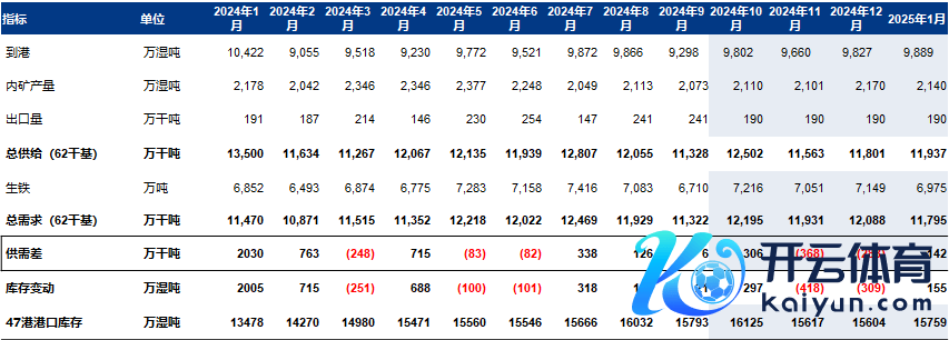 月度均衡表:Mysteel铁矿石分析团队12月31日忖度,1月份中国47港铁矿石小幅累库。